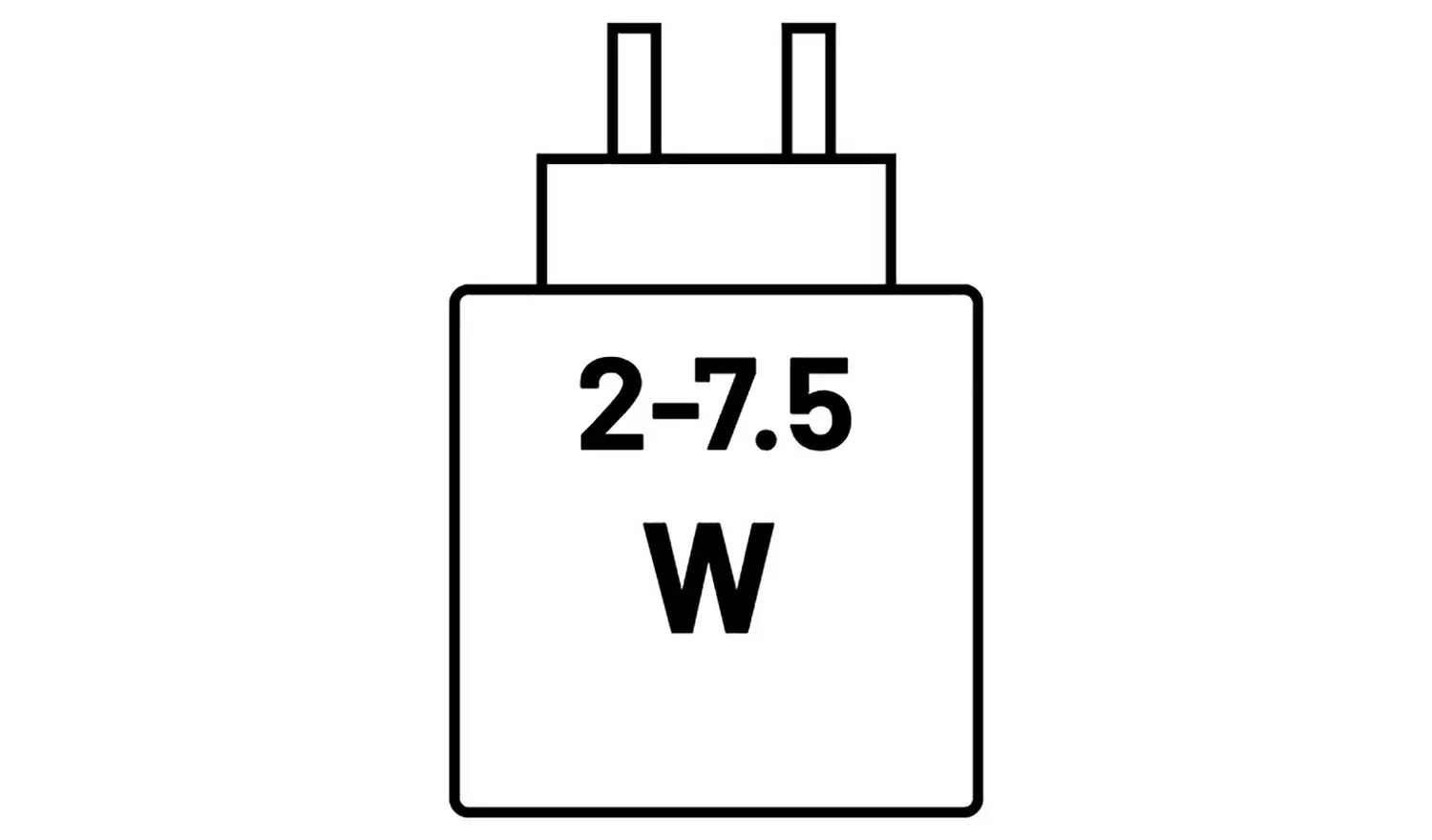 The required output of a suitable charging device is 2W minimum and 7.5W maximum.