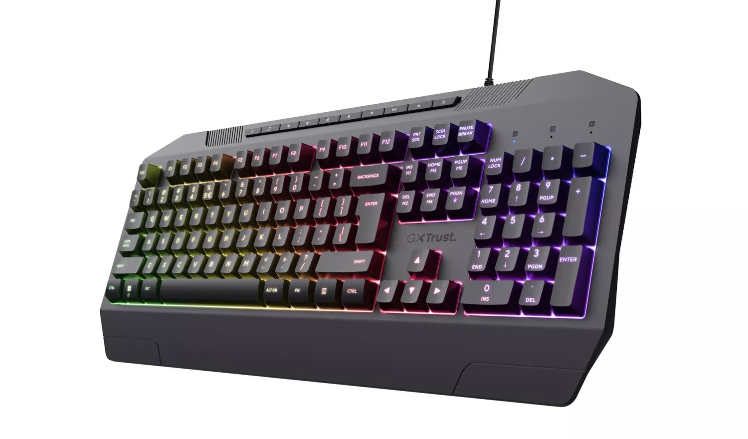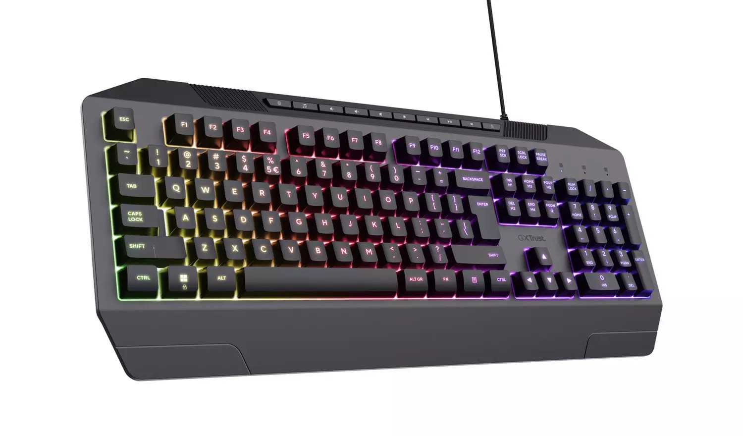 RGB rainbow wave illumination with adjustable brightness and colours allows you to play in style. Anti-ghosting functionality registers up to 25 simultaneous key presses at the same time.